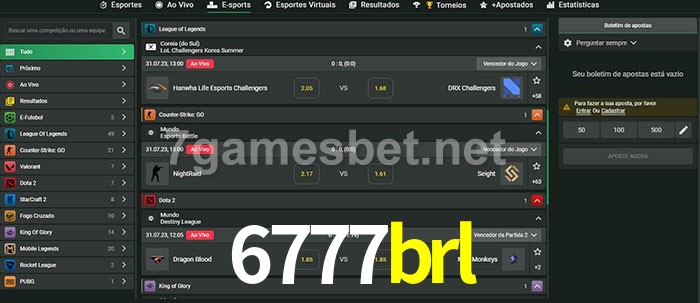 A aposta 6777brl oferece aos jogadores a experiência mais conveniente de apostas em eSports!